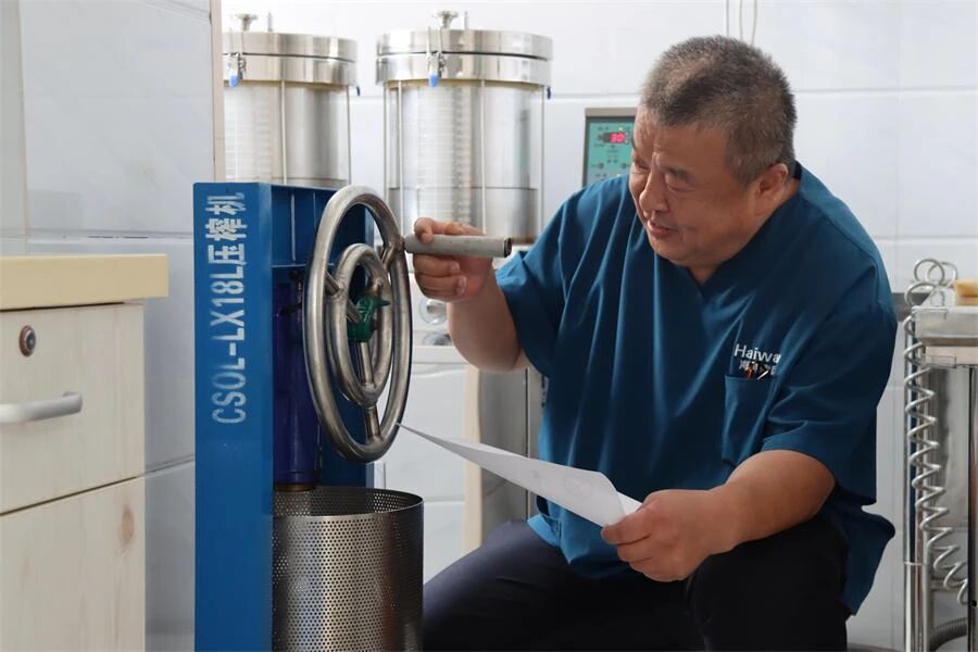 但新設備投入運行一段時間后,其操作上的問題逐漸暴露。千斤頂?shù)牟僮鳁U需要操作人員反復抬升、壓下,過程費力且效率不高。而沉重的金屬壓桿在使用中容易發(fā)生意外脫落,產生新的安全隱患。這一情況引起院長范新文的高度關注,他隨即研究壓榨機結構,提出將“上下抬壓”改為“旋轉操作”,從根本上消除壓桿脫落隱患。