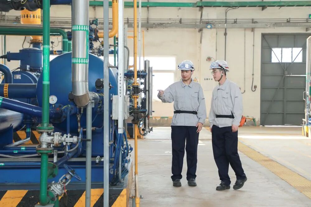 工段長徐全峰和副工段長宋樹清是氯氫處理工段的“主心骨”,整個(gè)假期都守在一線,帶著“嚴(yán)、細(xì)、實(shí)”的勁頭抓生產(chǎn)監(jiān)管和安全落實(shí)。氫氣處理廠房里,班前會(huì)主操李豪提醒大家:“節(jié)日期間必須執(zhí)行好‘雙崗確認(rèn)、四小時(shí)巡檢’制度!”他拿起測溫槍來到現(xiàn)場,檢測完軸承溫度后,又開始檢查電流壓力;在氯壓機(jī)區(qū)域,三臺(tái)大型氯氣壓縮機(jī)正高效運(yùn)轉(zhuǎn),主操林加旭守在DCS系統(tǒng)前緊盯冷卻溫度。刁澤宇則攜帶便攜式氣體檢測儀逐段檢查法蘭接口,對每一處接口進(jìn)行仔細(xì)確認(rèn)。氫氣鍋爐作為蒸汽供應(yīng)關(guān)鍵,更是大家關(guān)注的重點(diǎn)。崗位員工進(jìn)行24小時(shí)動(dòng)態(tài)監(jiān)控,緊盯汽包液位、主蒸汽壓力與燃燒工況,精準(zhǔn)調(diào)控負(fù)荷,確保蒸汽系統(tǒng)“不掉隊(duì)”。