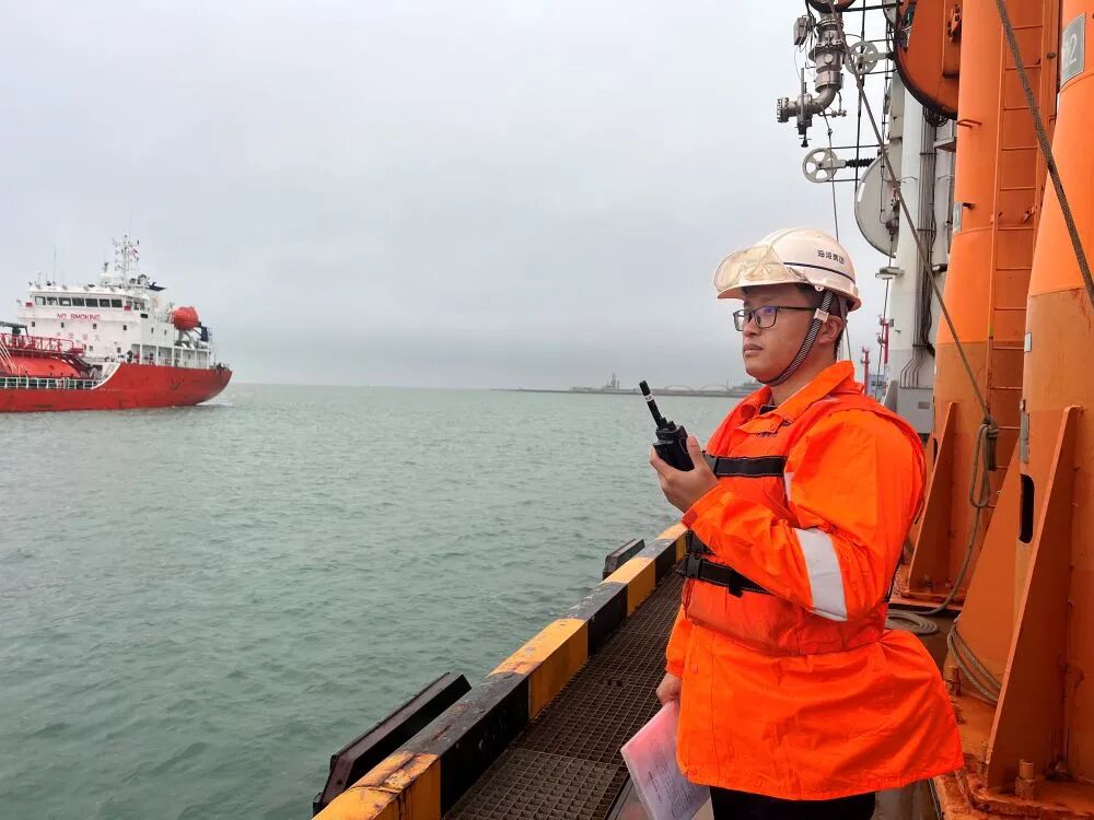“國(guó)慶快樂(lè)!咱們抓緊時(shí)間,安全第一!”曲永泉拿起對(duì)講機(jī),沉穩(wěn)有力的聲音穿透雨聲,與船方確認(rèn)著最后的靠泊指令。這個(gè)假期,抵港船舶多達(dá)12條,而“華南2”輪裝載的丙烯,是保障海灣化學(xué)原料供應(yīng)的關(guān)鍵,每一秒都耽擱不起。
