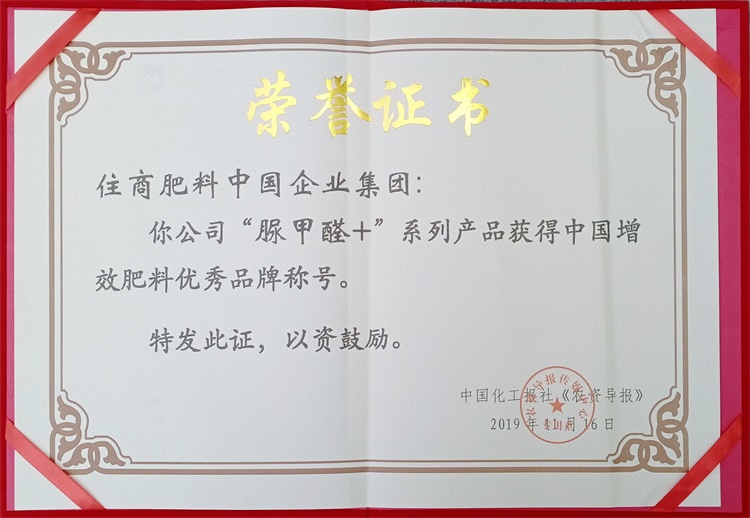 11月份,在中國磷復(fù)會大會上,青島堿業(yè)住商肥料(青島)“脲甲醛+”系列產(chǎn)品,獲得了中國增效肥料優(yōu)秀品牌榮譽稱號。近年來,堿業(yè)住商肥料從單一的脲醛復(fù)合肥料,到“脲甲醛+”、“摻混肥料+脲甲醛”、高端水溶肥料、微生物肥料、土壤調(diào)理劑,最終獲得廣大農(nóng)戶的肯定,“脲甲醛+”系列產(chǎn)品在廣袤的土地上,結(jié)出豐碩之果,企業(yè)探索出了一條適合復(fù)合肥創(chuàng)新發(fā)展之路。