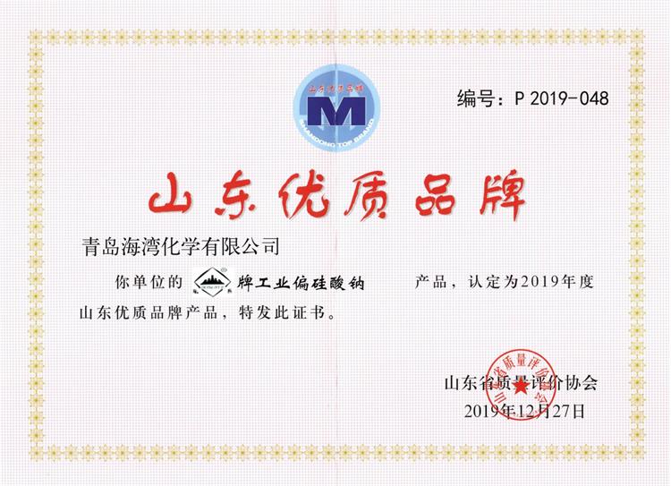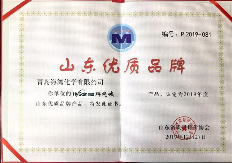 近日,海灣化學(xué)海晶牌燒堿產(chǎn)品、東岳牌工業(yè)偏硅酸鈉產(chǎn)品榮獲 2019年度山東省優(yōu)質(zhì)品牌。