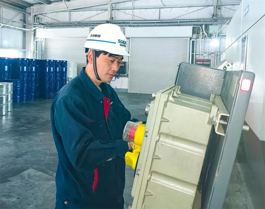 班前會(huì)后,堿業(yè)發(fā)展電儀部?jī)x控班班長(zhǎng)孫振鵬一把抓起工具包,三步并作兩步向車(chē)間走去。只見(jiàn)他蹲在包裝機(jī)旁,耳朵貼近電機(jī)聽(tīng)異響,手指輕撫傳送帶查震動(dòng),然后在控制面板上快速調(diào)試著……